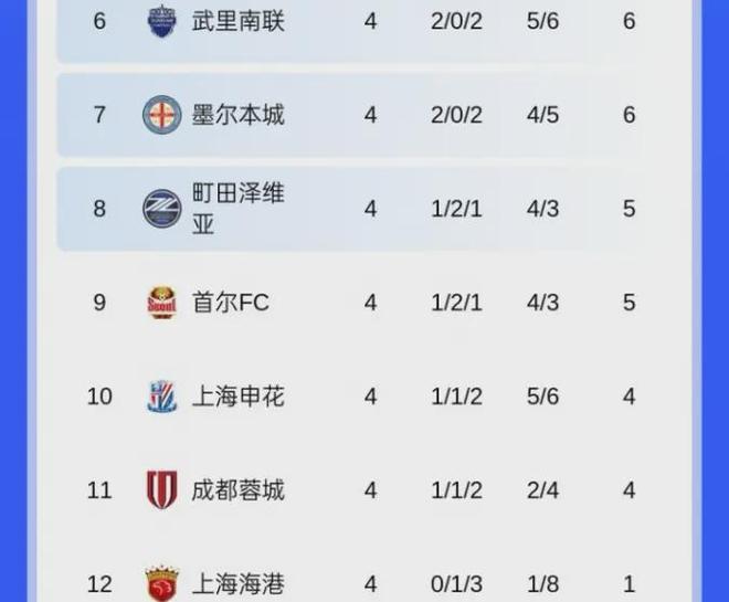 本輪亞冠東亞區戰罷,中超球隊交出恥辱答卷:海港0-2武裏南聯,蓉城0-0首爾FC,申花1-3柔佛新山。積分榜上,海港4輪1分墊底,蓉城、申花分居倒數二三,三支球隊加起來僅積9分,神戶勝利船一支球隊就拿到了這個分數。
