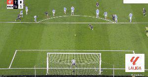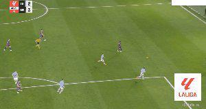 45+4’ 拉什福德橫傳,塞爾塔球員解圍變線,亞馬爾後點破門,巴薩3比2領先。